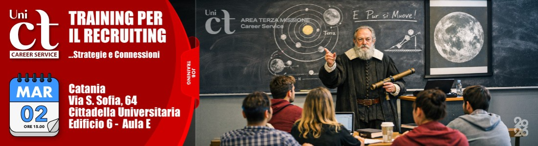 Lunedì 2 Marzo 2026 presso l’Aula E dell'edificio 6 della cittadella Universitaria, dalle ore 15:00 alle 17:00, il Career Service d'Ateneo organizza in collaborazione con il Dip. di Fisica e Astronomia un incontro di preparazione al Campus Recruiting di giovedì 12 Marzo 2026 dedicato a questo stesso dipartimento .